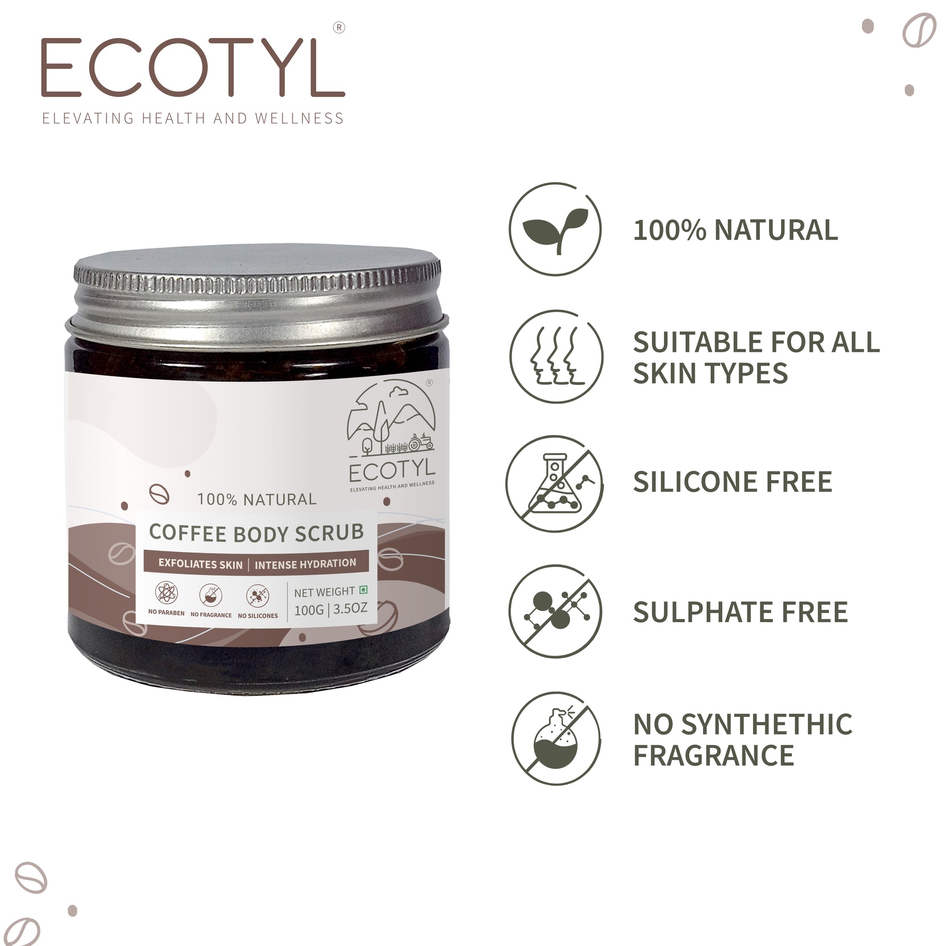 Ecotyl Natural Coffee Body Scrub | For Gentle Exfoliation | No Silicones & Mineral Oil | 100g