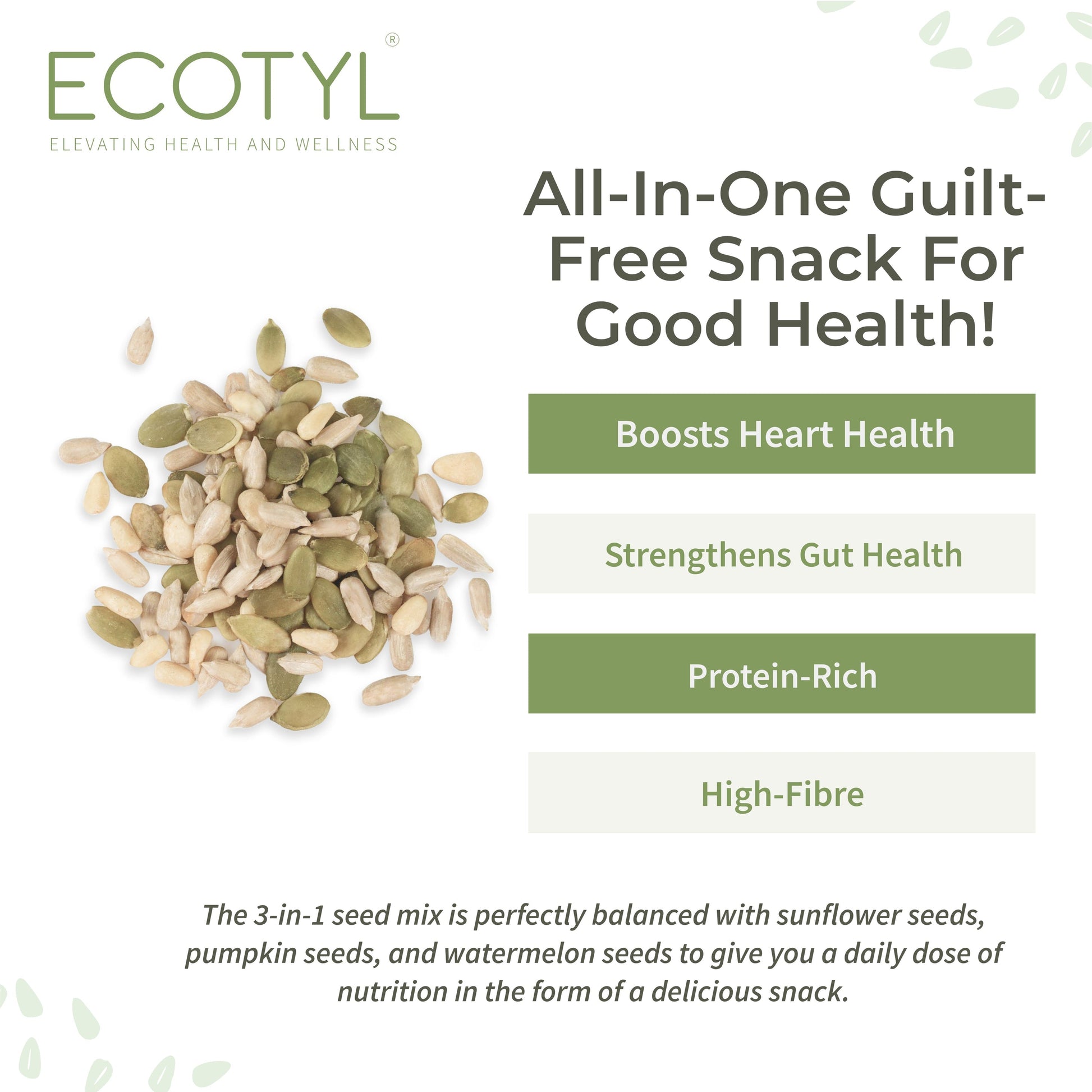 Ecotyl Seed Mix | Sunflower, Pumpkin, and Watermelon Seeds | Unroasted | 200g