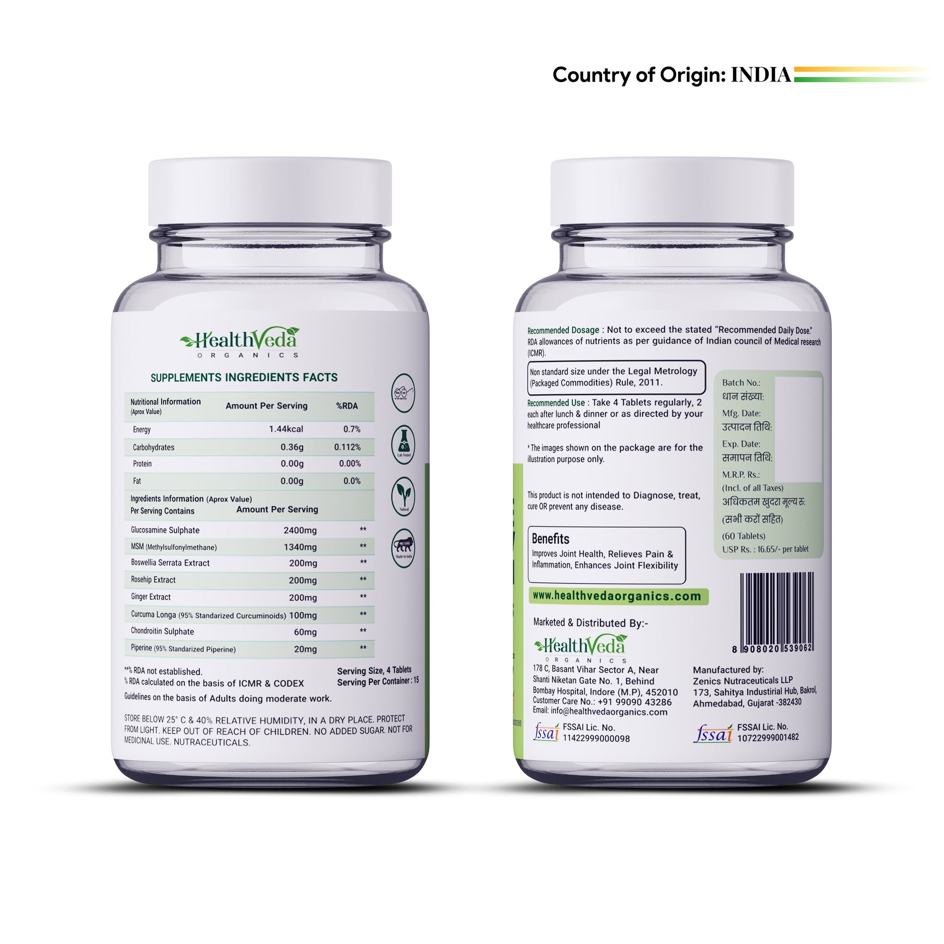 Health Veda Organics Glucosamine Chondroitin & MSM I 60 Veg Tablets I For Healthy Joint, Bone & Cartilage I Relieves Pain & Stiffness I For both Men & Women