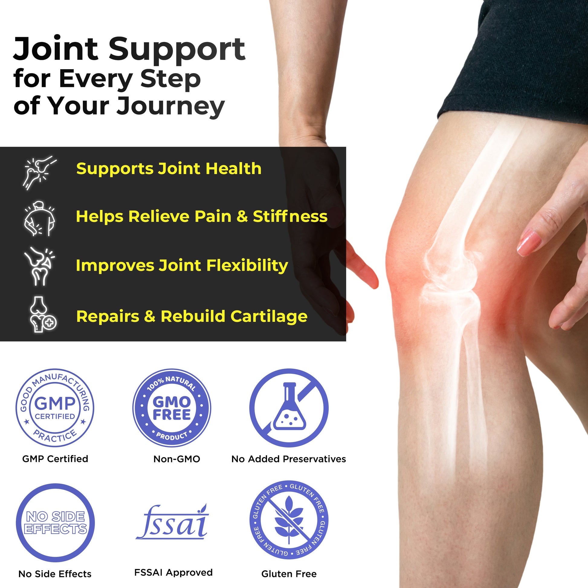 Ingredients : Glucosamine Sulphate, Chondroitin Sulphate, MSM, Boswellia Serrata Extract, Curcuma Longa, Piperine, Rosehip Extract, Ginger Extract