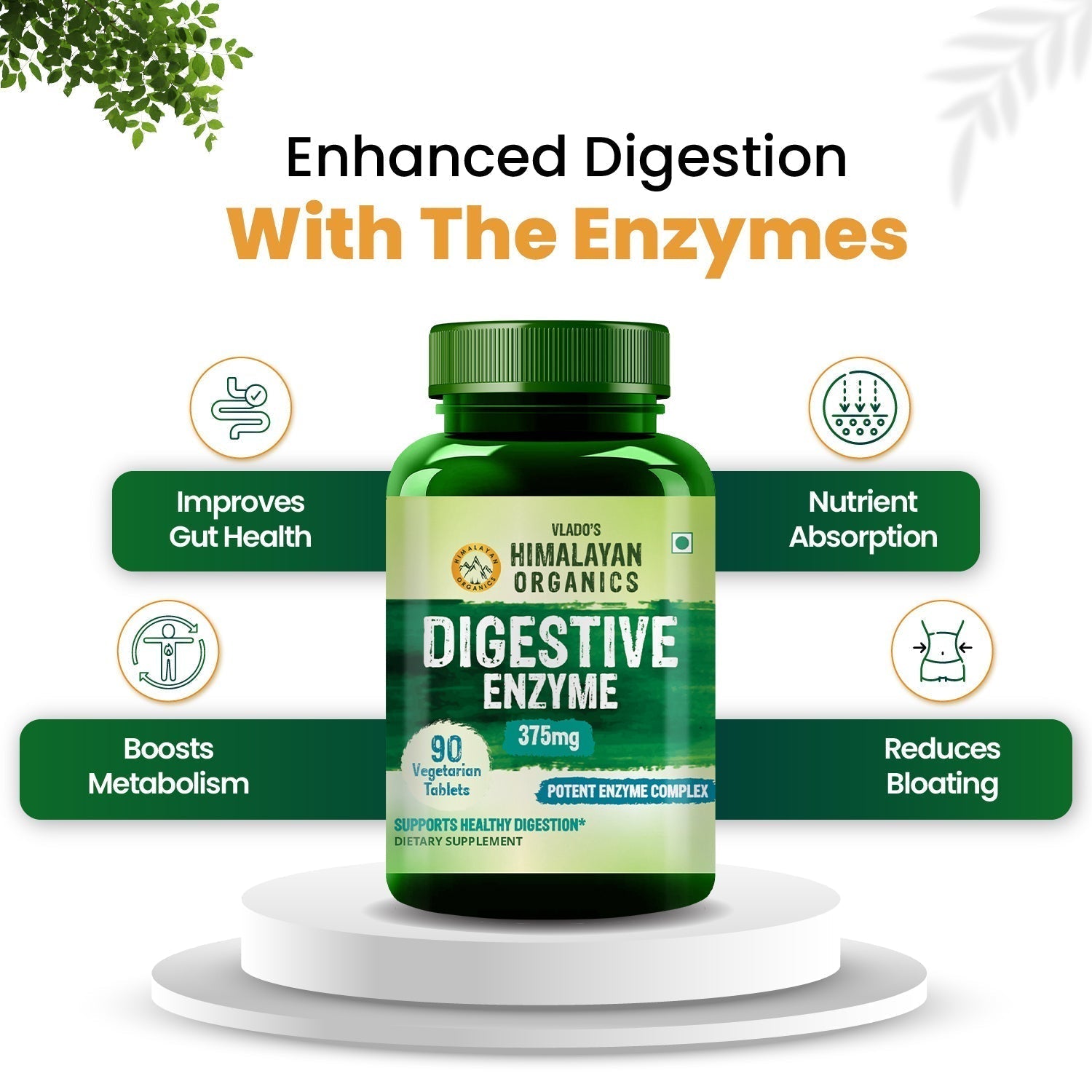 1 Tablet for Smooth Digestion: Vlado's Himalayan Organics Digestive Enzyme can be taken to relieve digestion problems effectively. It contains a range of digestive enzymes that enhance digestion efficiency along with decreasing fatigue to keep you refreshed throughout the day.