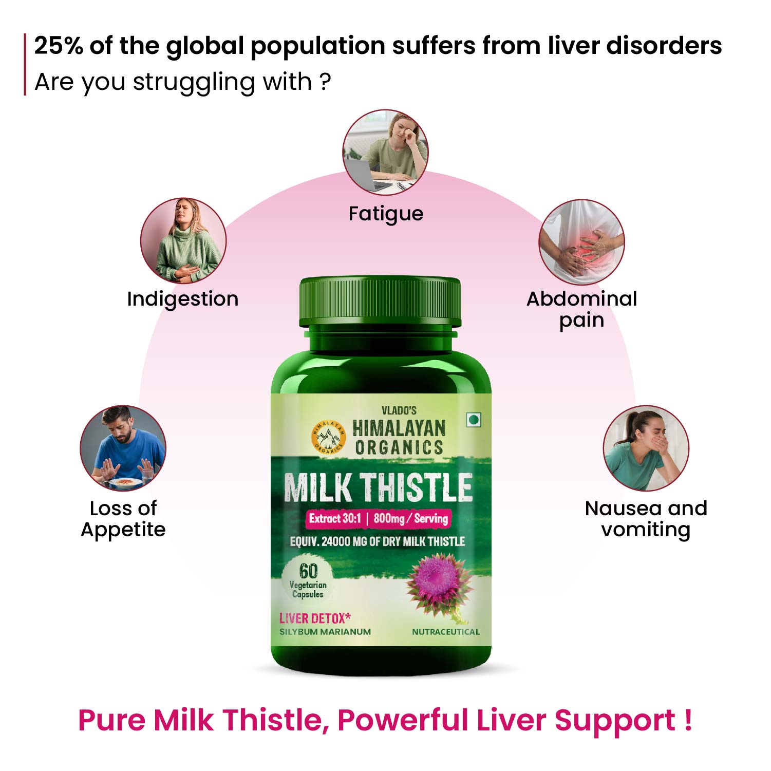 Vlado's Himalayan Organics Milk Thistle Extract Supplement for Men and Women | With 800mg Silybum Marianum | 60 Vegetarian Capsules