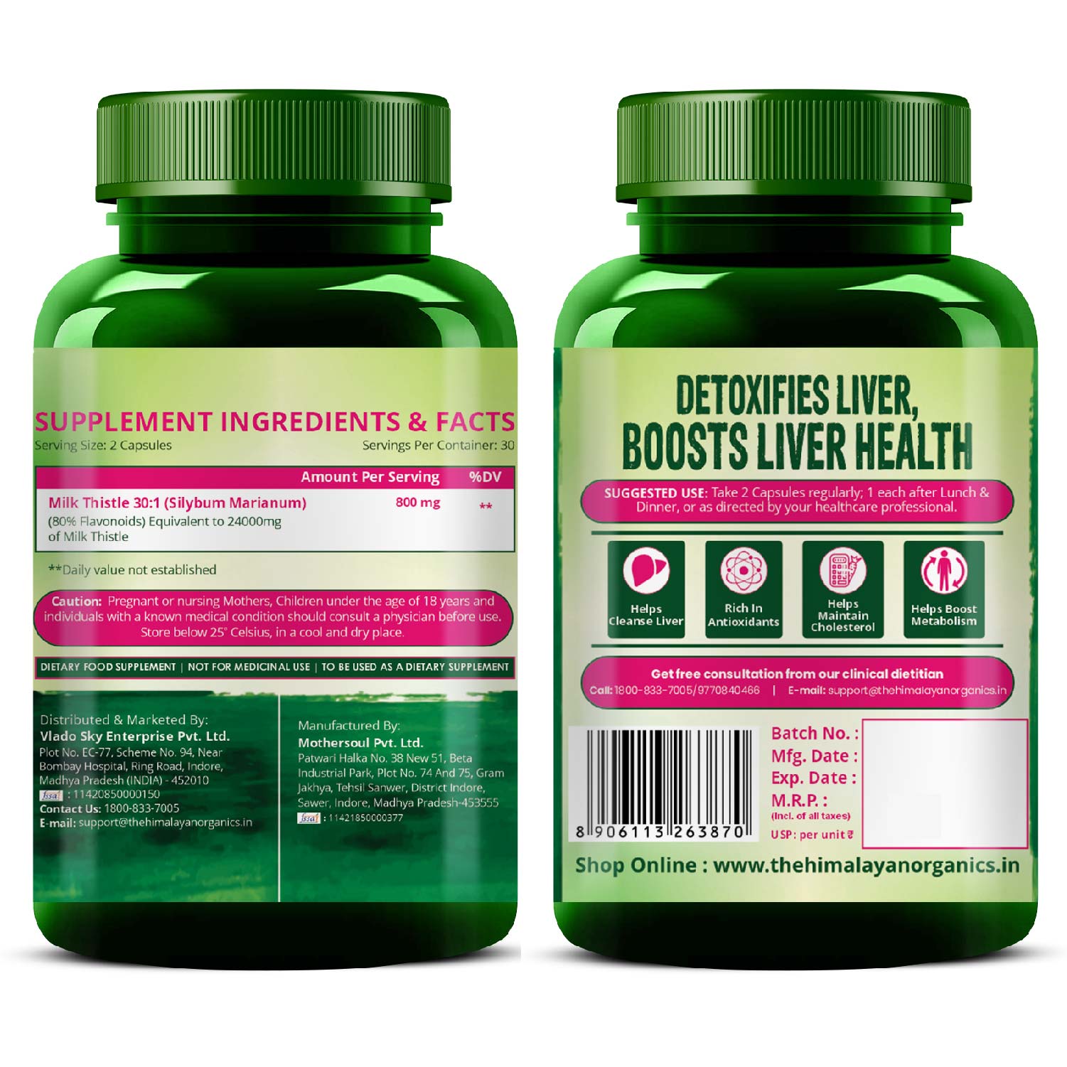 Description- Vlado's Himalayan Organics Milk Thistle Extract features 800mg of Silybum Marianum per serving, formulated for those looking to add a herbal extract to their daily routine. Sourced from organically grown Milk Thistle seeds, these vegetarian capsules contain no additives and are gluten-free. This supplement offers a plant-based option that can be included as part of a balanced lifestyle. Designed for both men and women, each capsule provides a consistent intake of Milk Thistle Extract to complement everyday dietary habits.