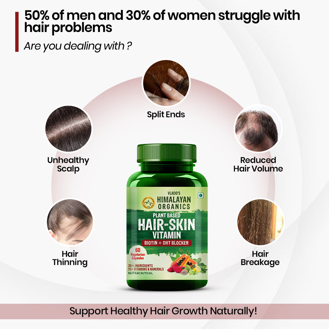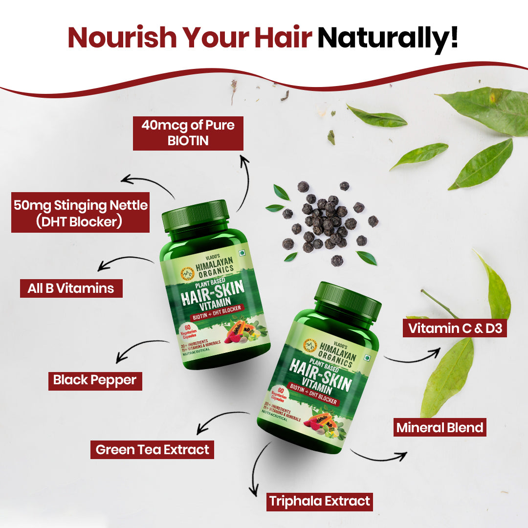 Vlado's Himalayan Organics Plant-Based Hair Vitamin with Biotin & DHT Blocker – 60 Veg Capsules
