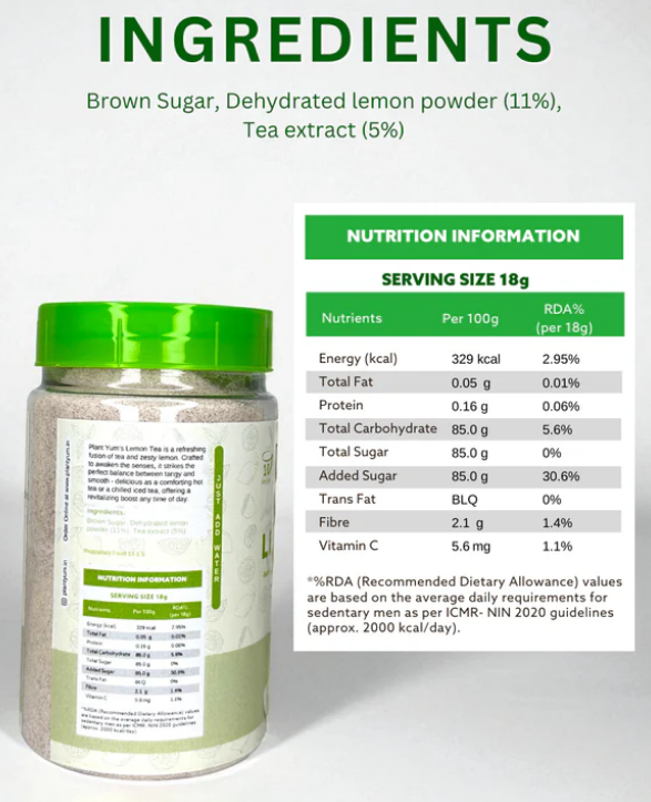Brown Sugar, Dehydrated Lemon powder (11%), Tea Extract (5%)