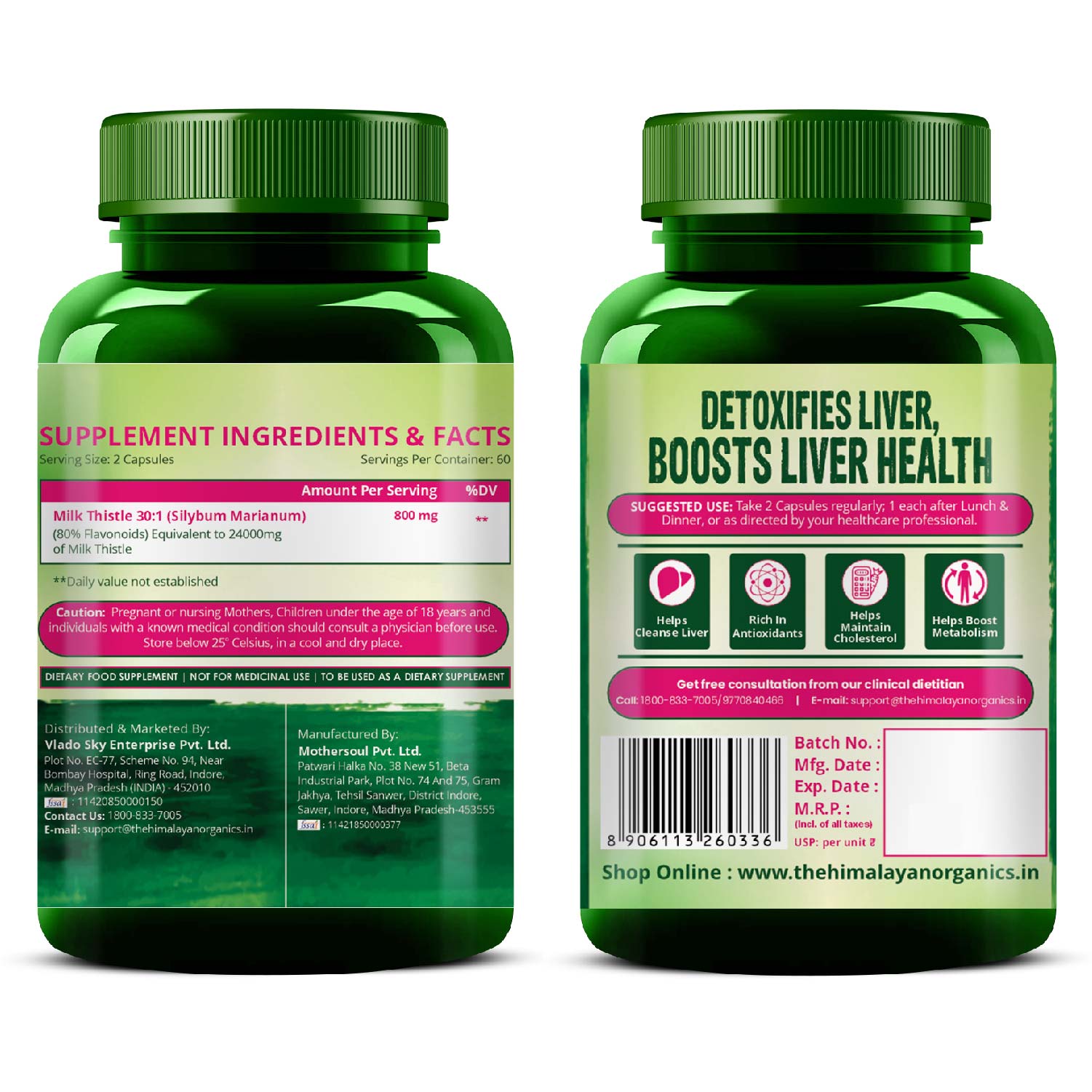 Vlado's Himalayan Organics Milk Thistle Extract Silymarin 800mg/Serve - 120 Veg Capsules