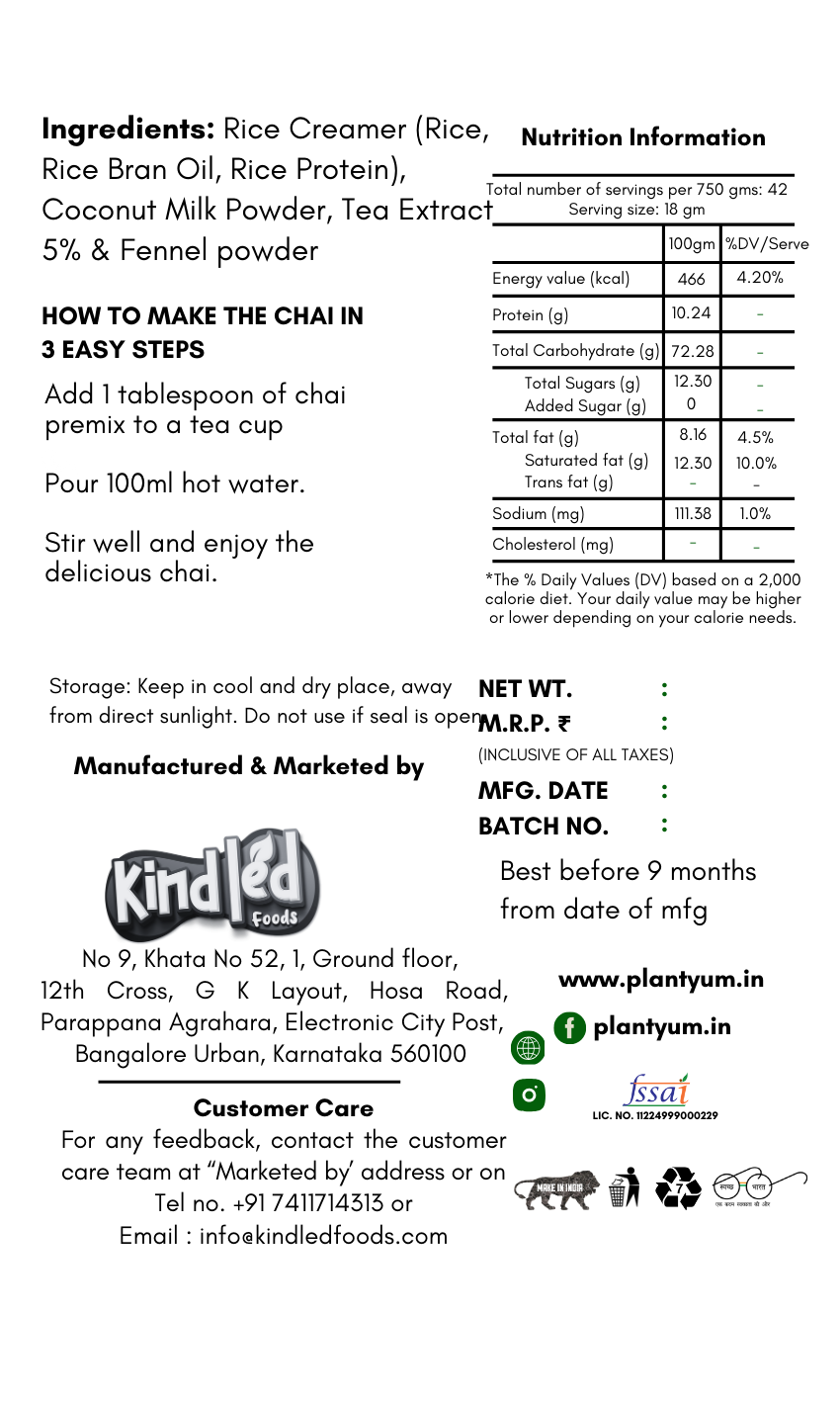 Rice Creamer (Rice, Rice Bran Oil, Rice Protein), Coconut Milk Powder, Tea Extract 5%, Fennel Powder.