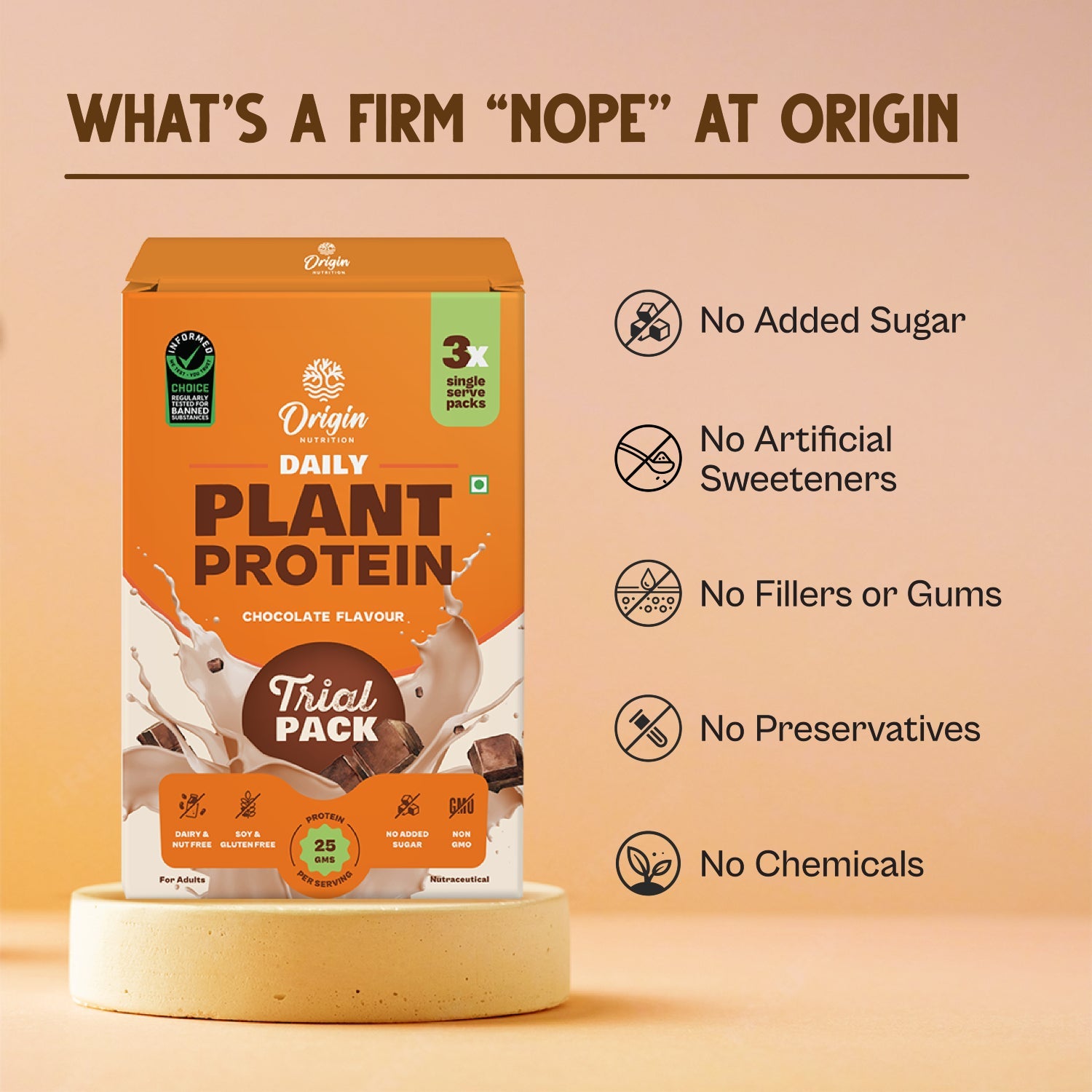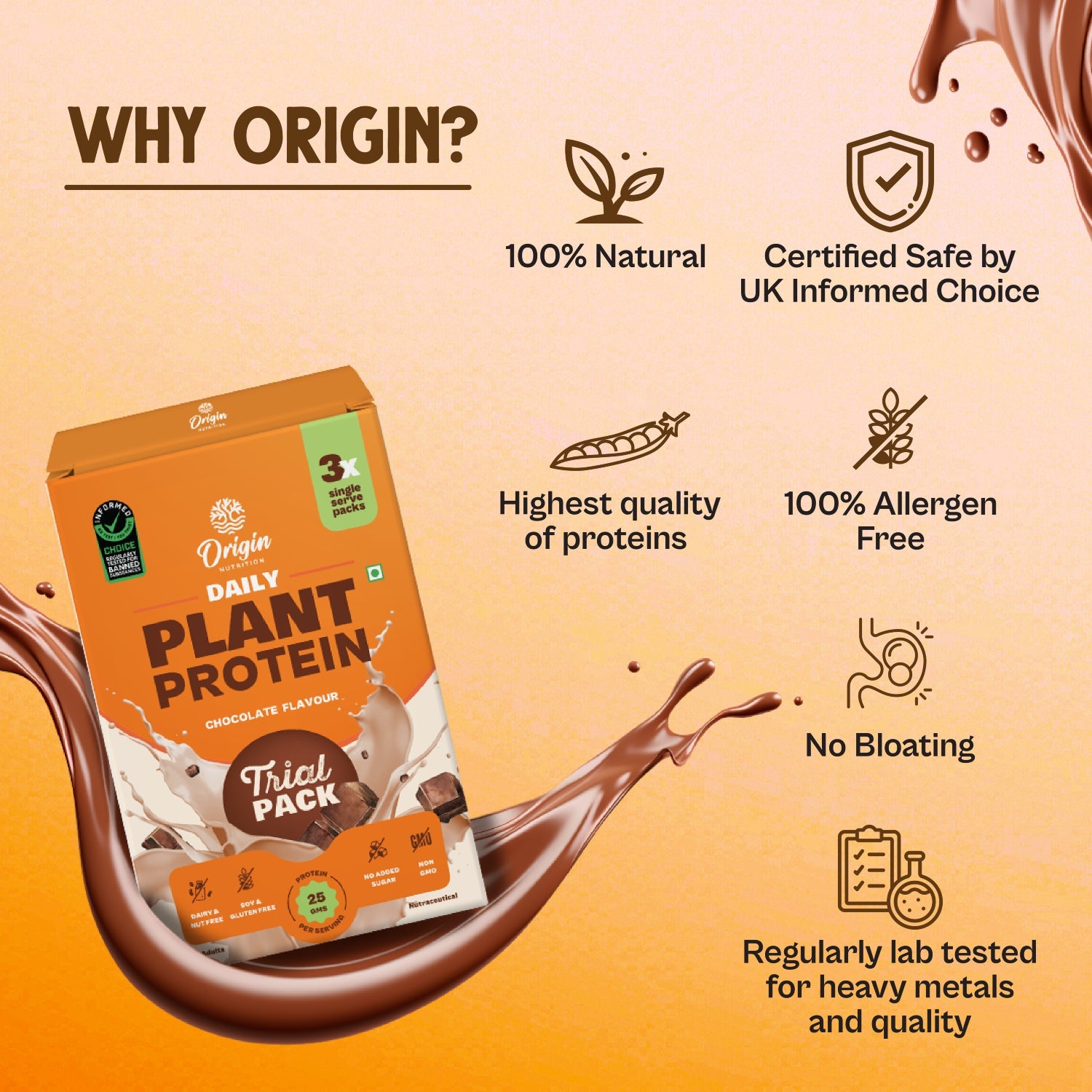 Origin Nutrition Plant Protein Chocolate Trial Pack - 100% Natural | 25g of Protein per sachet | Perfect for Beginners | No Added Sugars | Suitable & Convenient for All Diets (Chocolate)