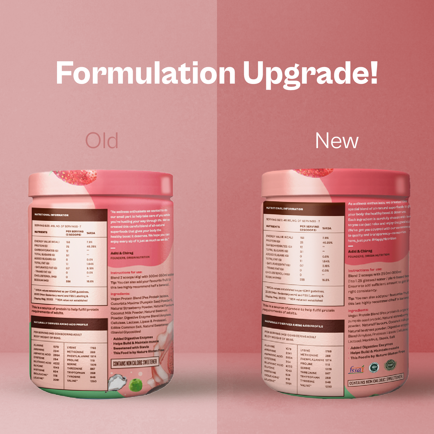 Origin Protein is made from a blend of premium European golden peas and cold-pressed organic pumpkin seeds. It is a complete protein with all nine essential amino acids, easy to digest, and absolutely delicious. Each serving contains 25 grams of protein & 4 grams of naturally occurring BCAA. With great-tasting Natural Strawberry fruit powder, our protein powder is ideal for weight management and improving protein intake.