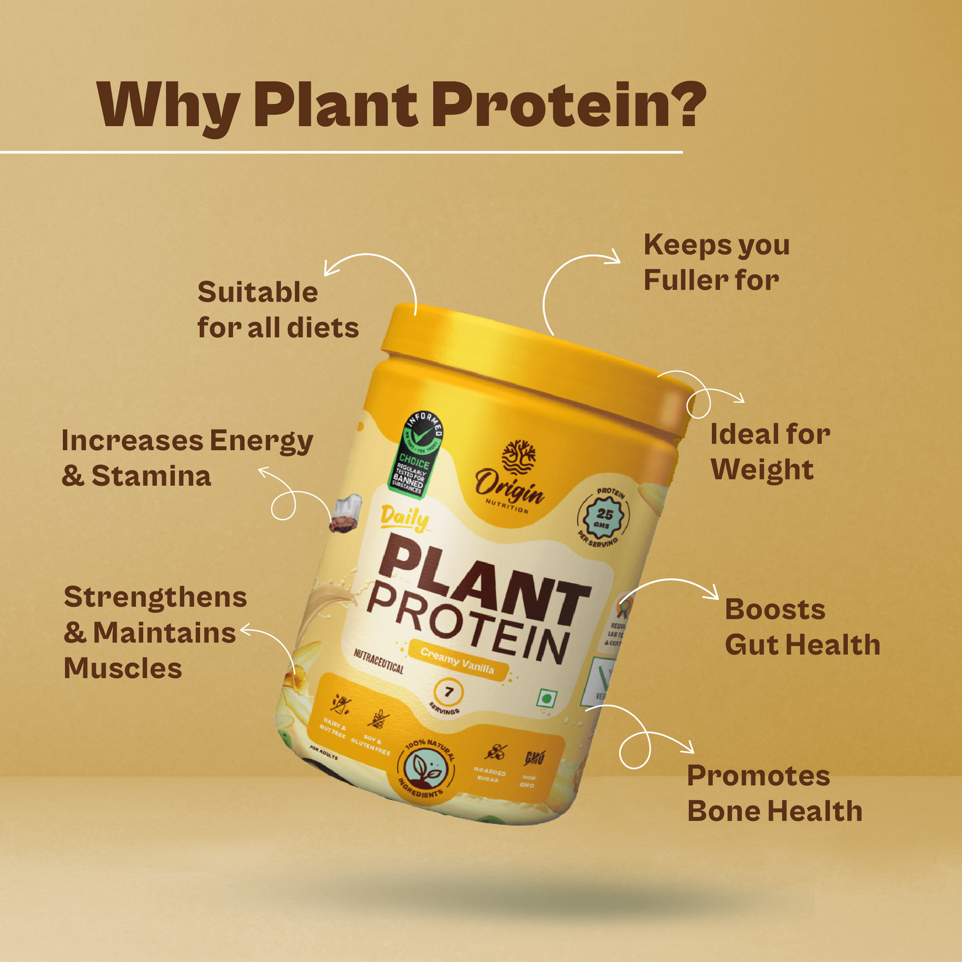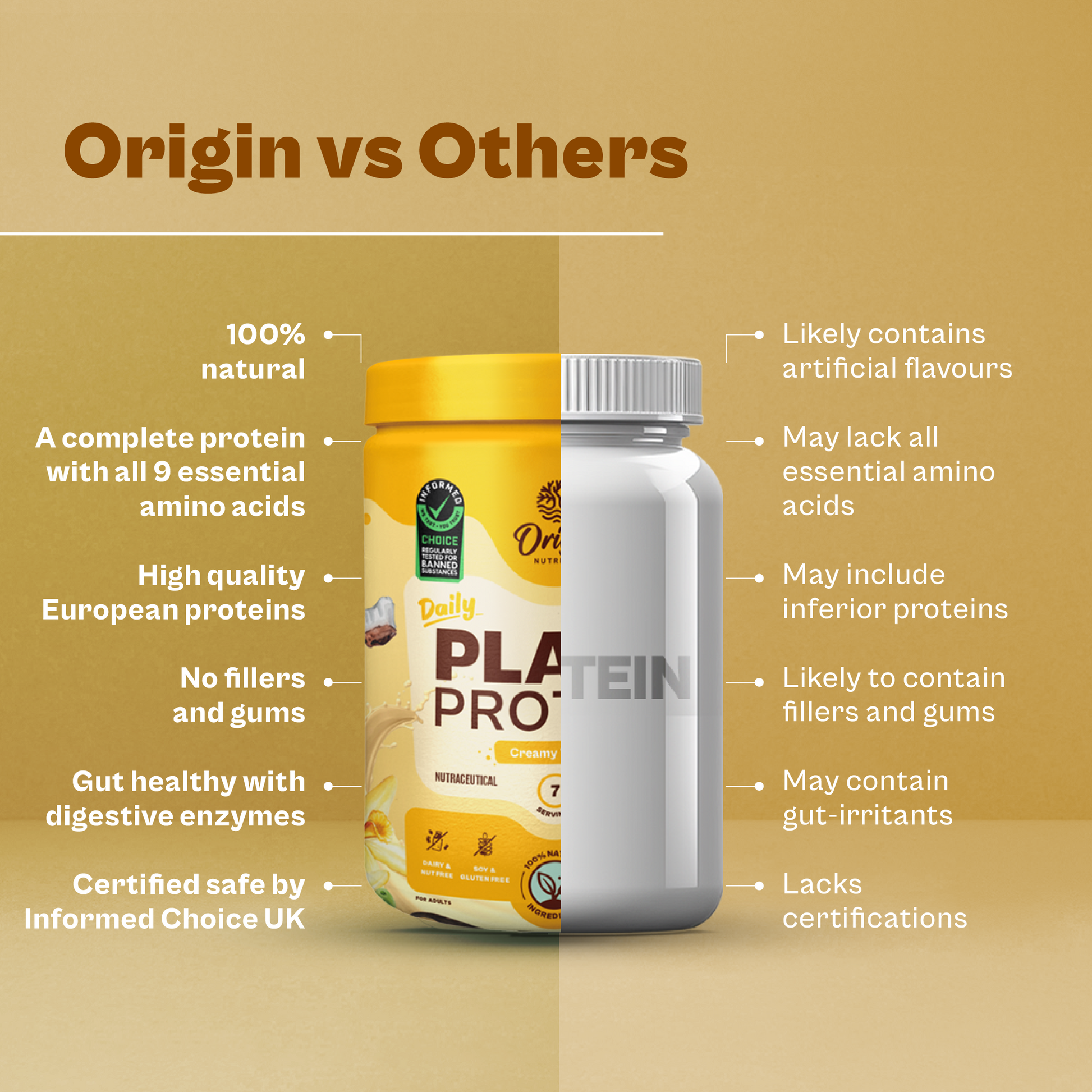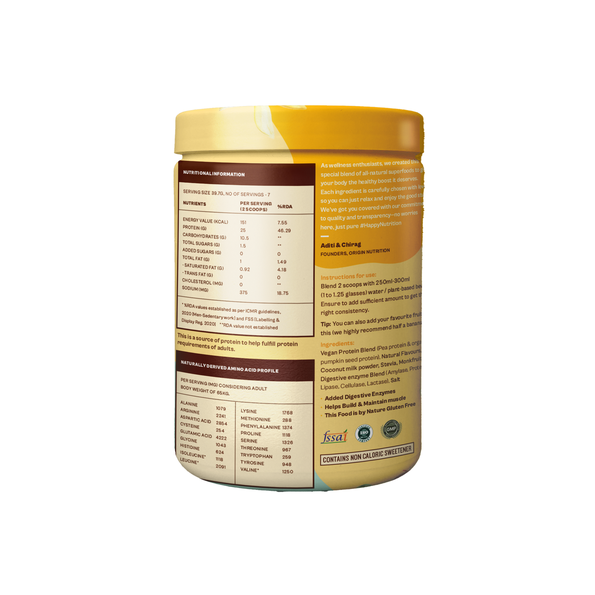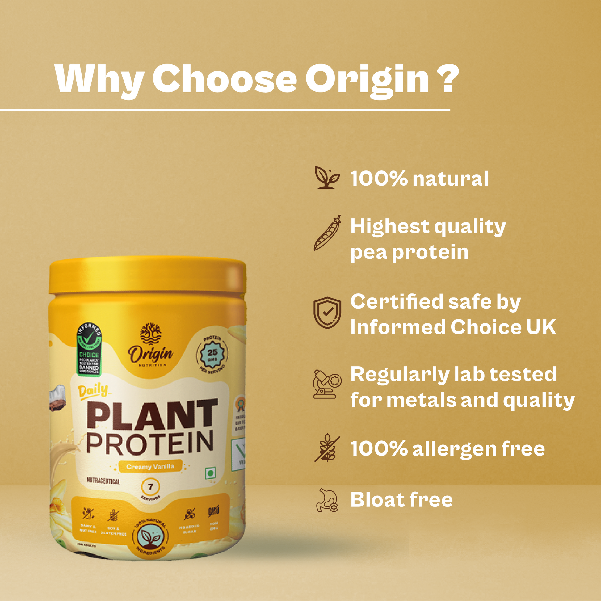 Origin Plant Protein is made from a blend of premium European golden peas and cold-pressed organic pumpkin seeds. It is a complete protein with all nine essential amino acids, easy to digest, and absolutely delicious. Each serving contains 25 grams of protein & 4 grams of naturally occurring BCAA. With great-tasting Natural Vanilla Flavour, our protein powder is ideal for weight management and improving protein intake.
