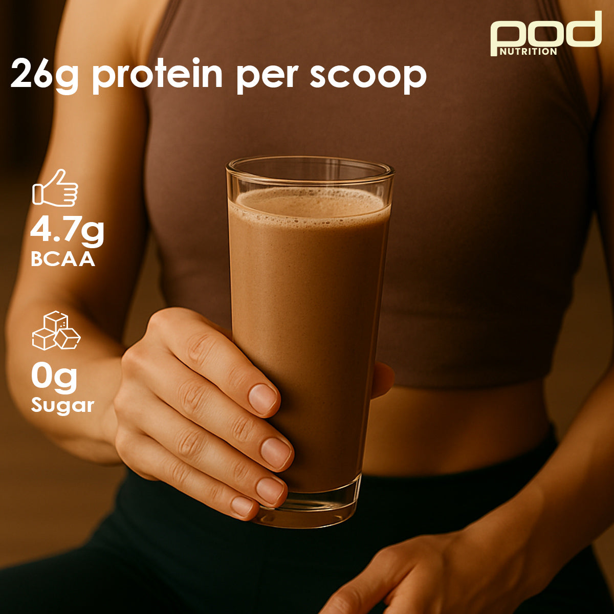 POD NUTRITION Pea Protein Isolate Powder | Vegan Plant Protein, No Added Sugar, Dairy Free| Clean & Easy to Digest with Essential Amino Acids (1kg, Cafe Mocha)