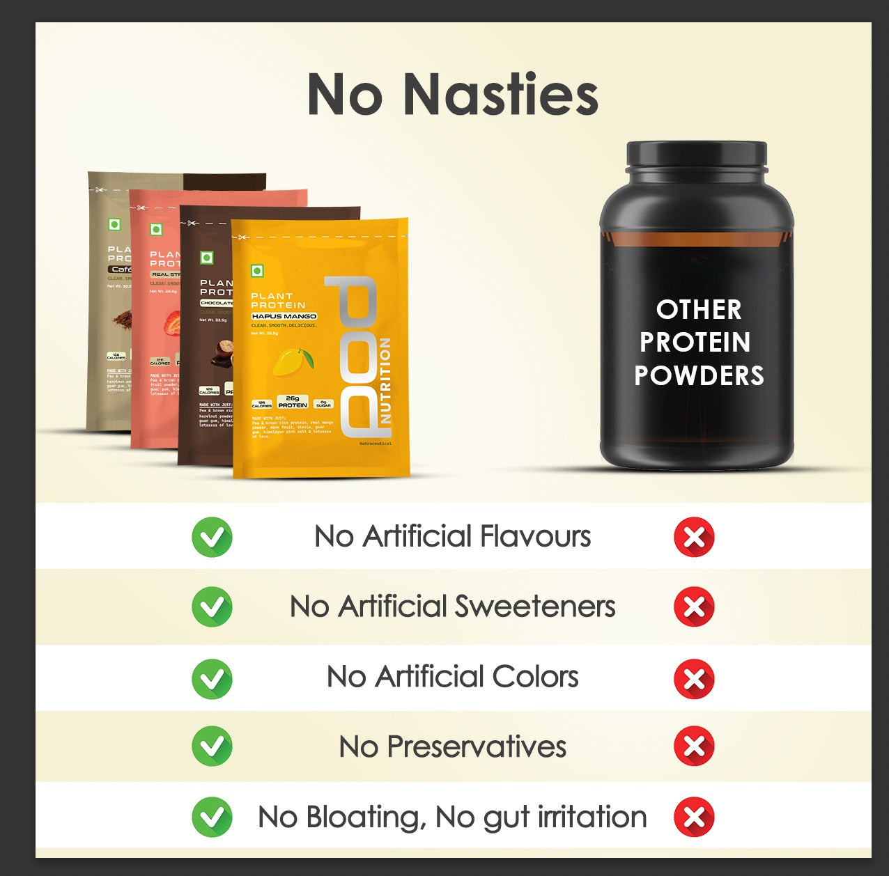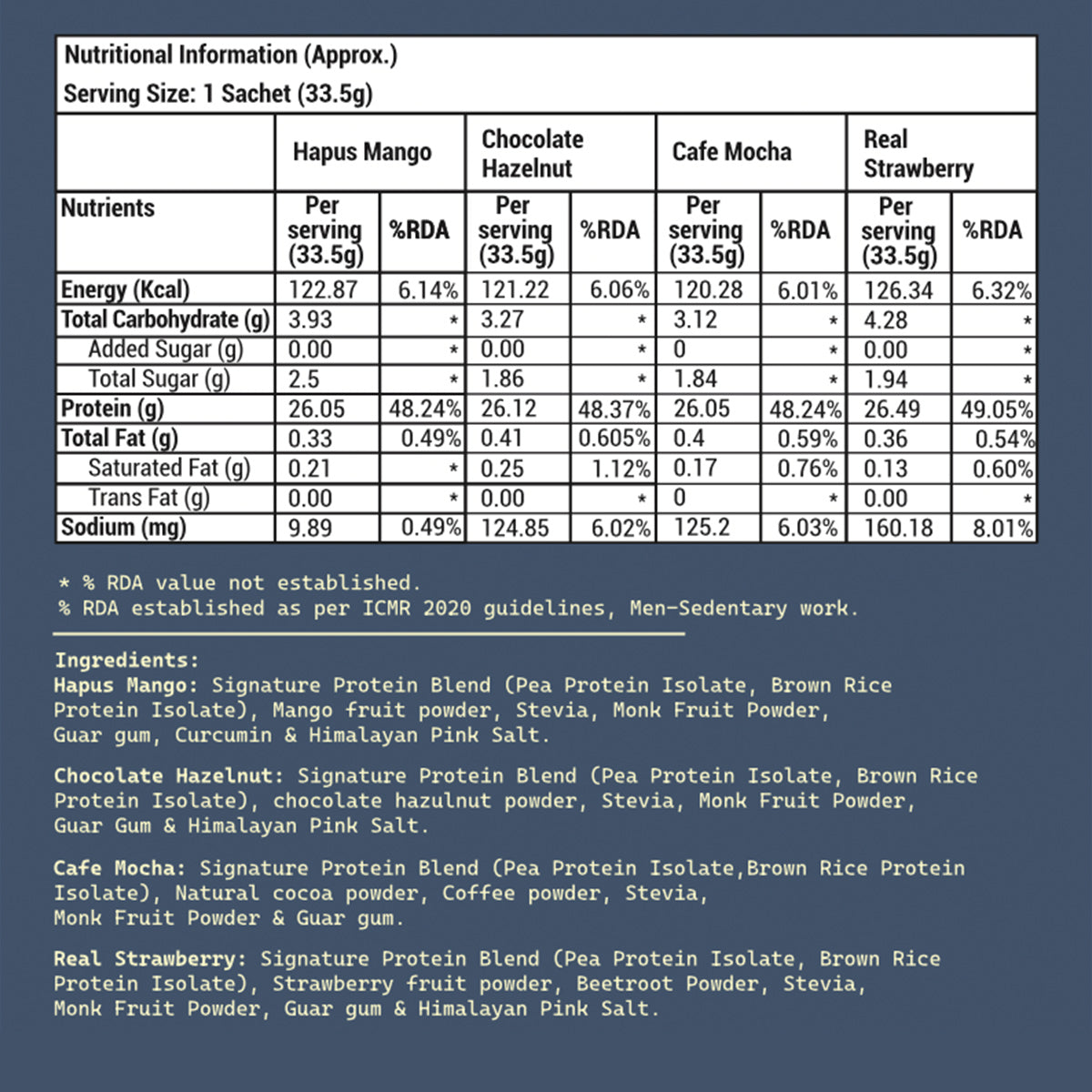 - 100% Transparency is our core value! Every pack has a QR code on the back. Don't just take our word, scan it and you will see that reputable FSSAI Labs have validated our complete nutrition table, amino acid profile and protein content.