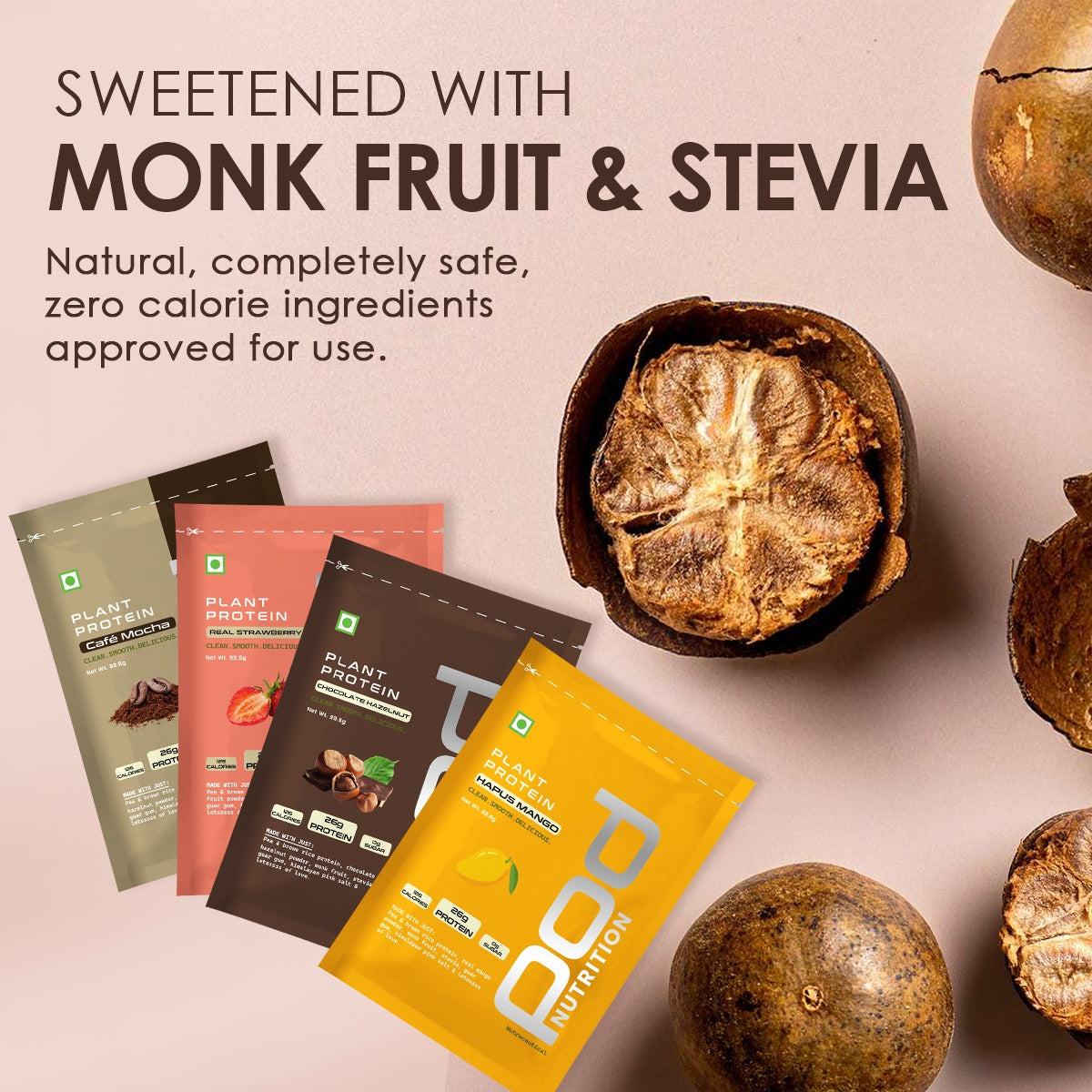 - If you have to consume it daily, the sweetner better be natural. Pod is only sweetened using plant based sweetners, i.e. Monk Fruit & Stevia. Our signature sweetner blend ensures absolutely no bad aftertaste.