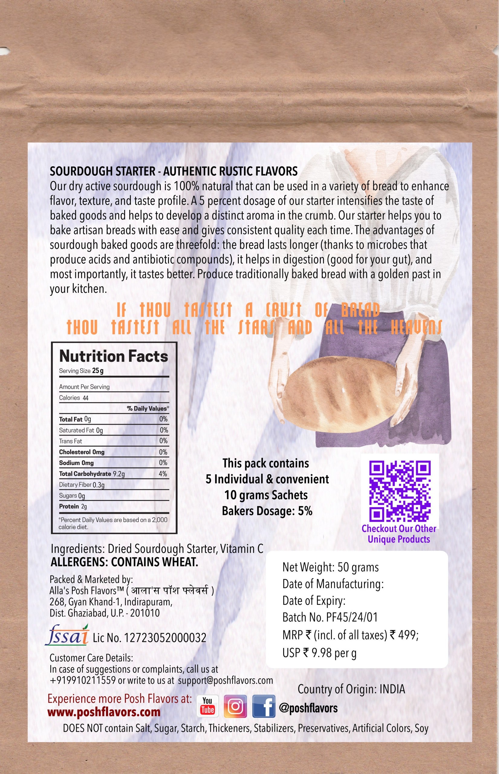 Alla’s Posh Flavors Sourdough Starter | Active Instant Culture for Homemade Artisan Bread, Baguette, Ciabatta, Focaccia, Pizza Crust & More | Direct Use with Step-by-Step Recipes | Support Included | Commercial Yeast Replacement (5 x 10 g Sachets)