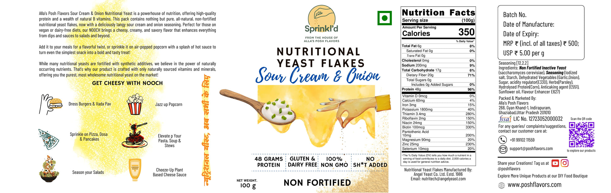 Sprinkl'd by Alla's Posh Flavors Dairy-Free Sour Cream & Onion Nutritional Yeast Flakes, Non-Fortified, Gluten-Free, Cheesy and Savory Nooch | Rich in B Vitamins Minerals and Protein | Plant-based Superfood, 100 Grams