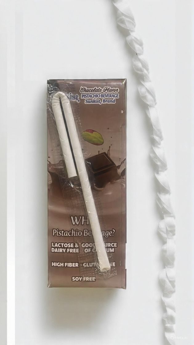 Ingredients: Pistachios Beverage(Filtered water and Pistachios), Fiber, Cocoa Powder, Sugar, Calcium Carbonate, Salt, Vitamin E, (Stabilizer (Microcrystalline Cellulose, Sodium Carboxymethyl Cellulose), Acidity Regulator (potassium Citrate), Emulsifier (Sunflower Lecithin).