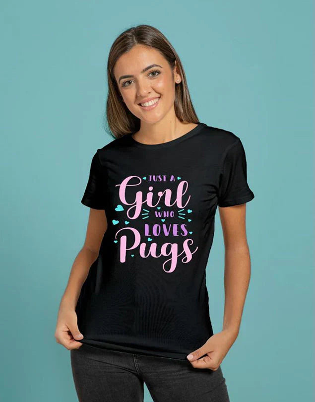 - Adorable Pug Graphic – Show off your love with the cute “Girl Who Loves Pugs” print.