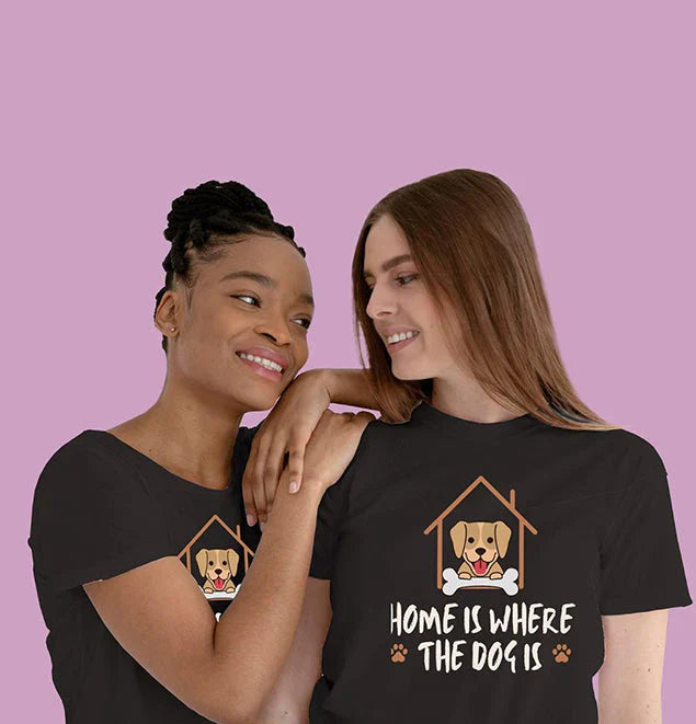 The Home Is Where Dog Is T-Shirt is crafted from 100% soft cotton for everyday comfort. Featuring the adorable slogan “Home Is Where Dog Is”, this tee is lightweight, breathable, and perfect for dog lovers.
