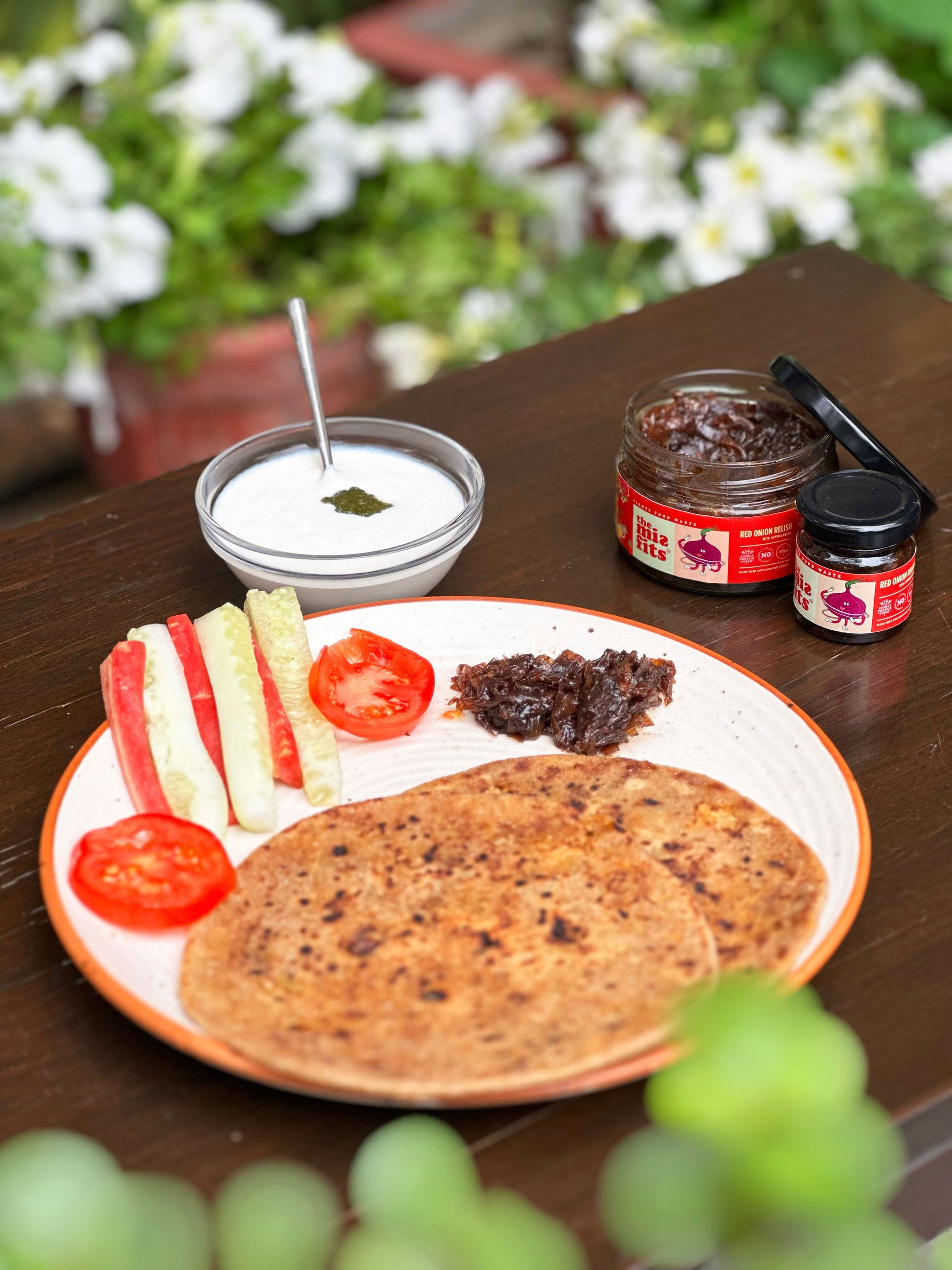 Made with slow-cooked onions, balsamic vinegar for a deep, rich flavor, khand for natural sweetness, and a touch of chili for a warm finish. Perfect for parathas, cheese boards, sandwiches, wraps, and more!