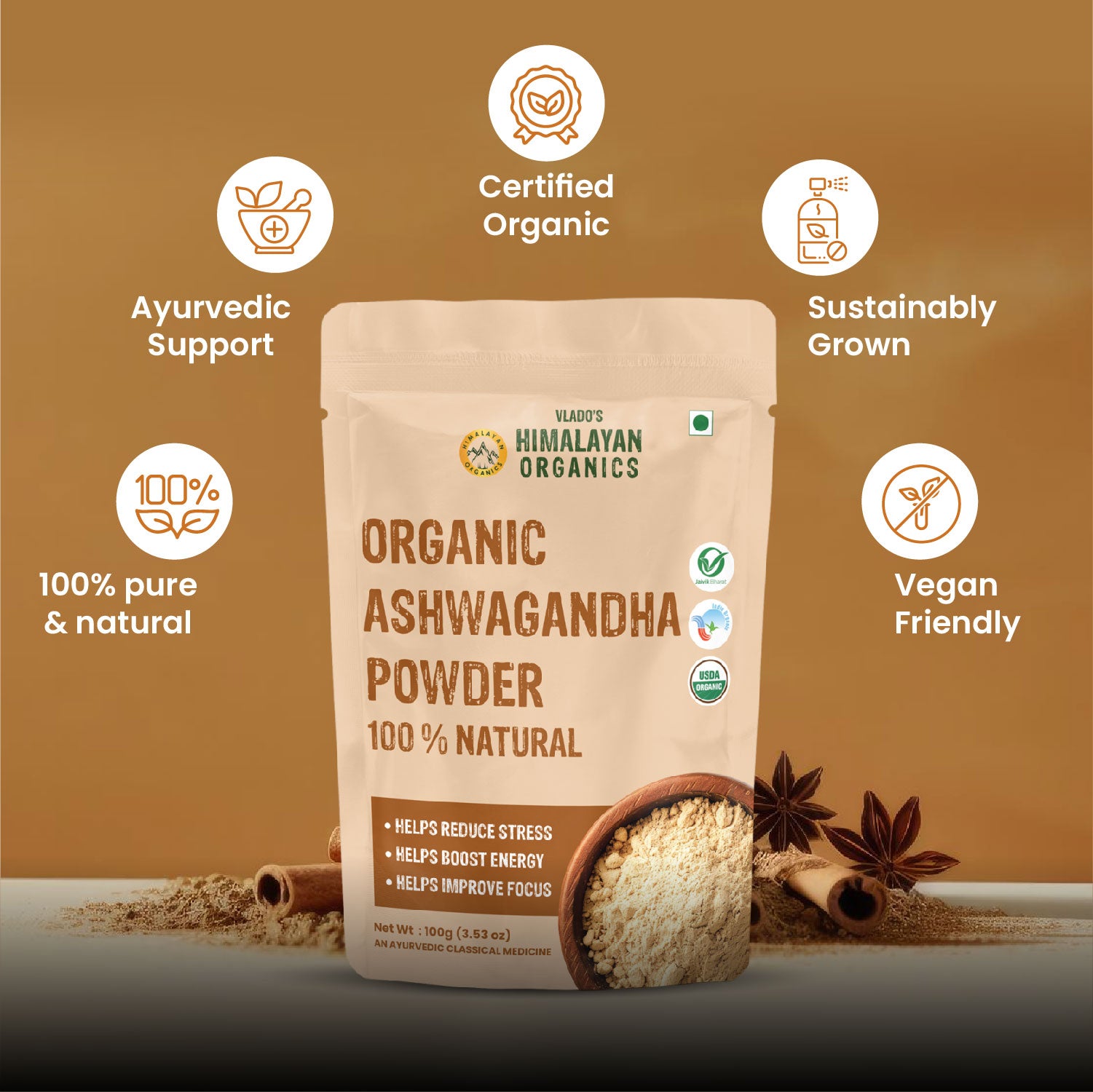 Vlado’s Himalayan Organics Ashwagandha Powder | 100% Organic & Pure | 100g