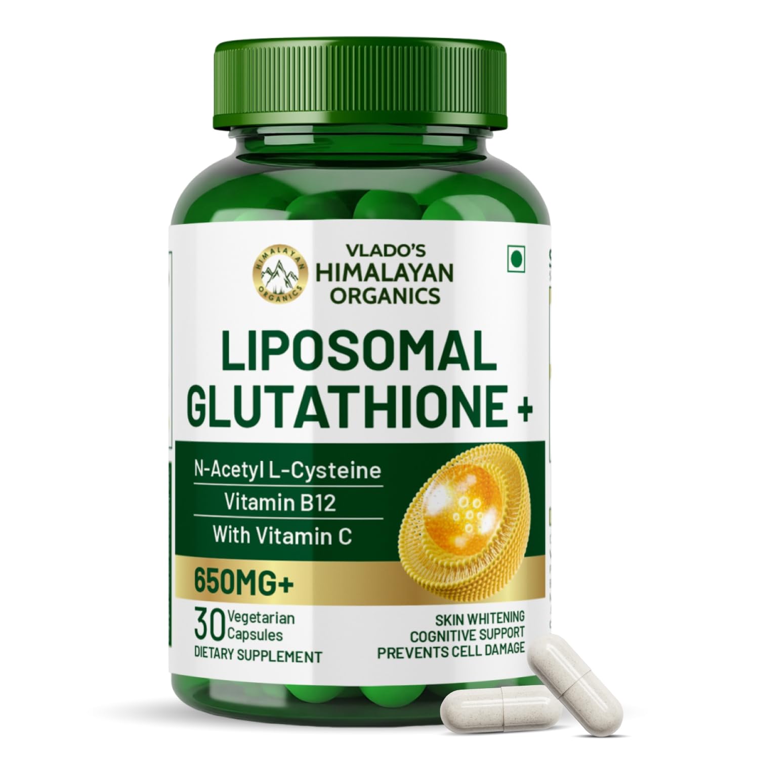 Vlado's Himalayan Organics Liposomal Glutathione 650mg+ with N-Acetyl L-Cysteine, Vitamin C & B12 | Advanced Liposomal Formula for High Absorption – 30 Veg Capsules