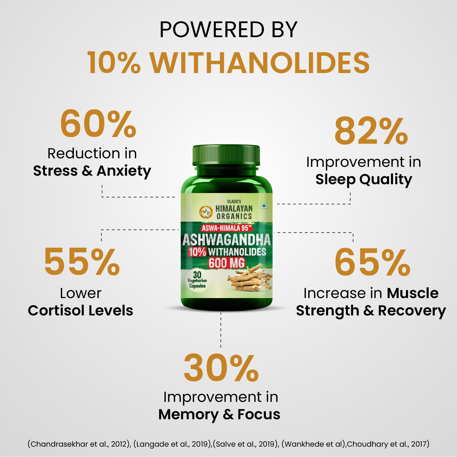 Vlado's Himalayan Organics Pure Ashwagandha Capsules | 10% Withanolides | 600 mg Ultra High Potency | Root-Only Extract | 30 Veg Capsules
