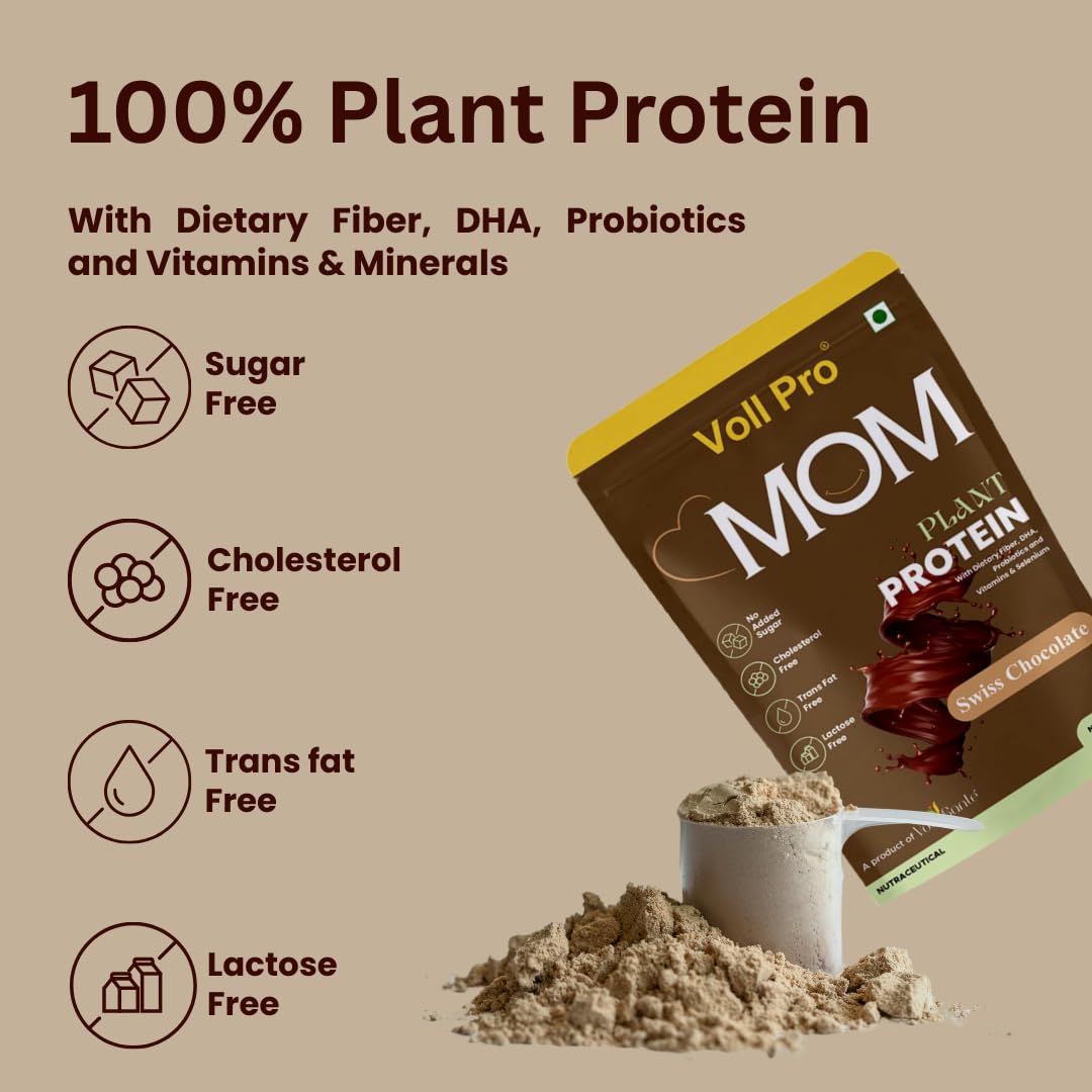 Voll Pro MOM Plant Protein Powder 200g | Swiss Chocolate Flavour | Plant-Based Protein with Dietary Fiber, DHA ,Vitamins & Minerals | No Added Sugar | Lactose Free | Cholesterol & Trans Fat Free | Easy To Digest